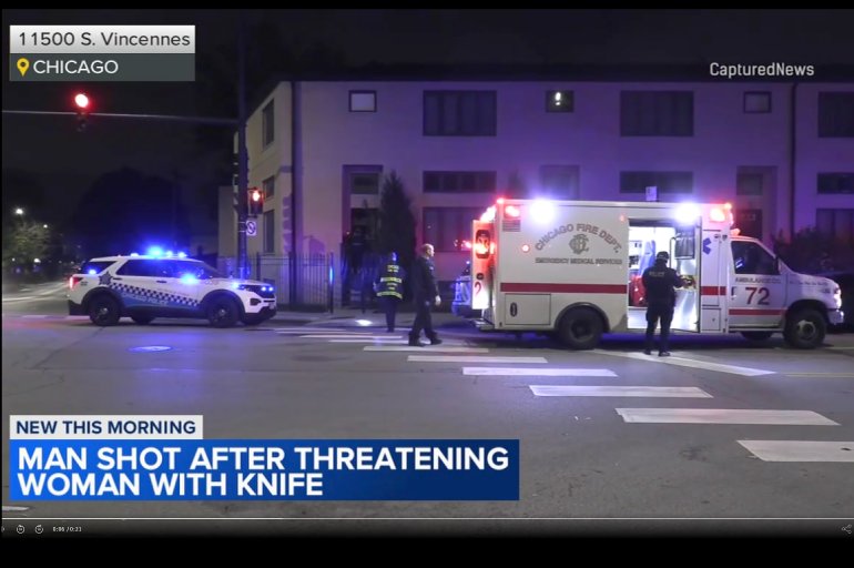 CHICAGO — A woman fatally shot a knife-wielding man early Sunday in Morgan Park on the Far South Side.