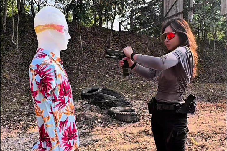 Enter our heroine — a regular girl. She’s at the range, gun in hand, making classic newbie mistakes. (Spoiler alert: she’s sandbagging you.) The wheels come off fast. Malfunction. Bad grip. Things go completely pear-shaped in the worst possible way. It’s the kind of moment where most people freeze, panic, or just give up and walk away embarrassed.